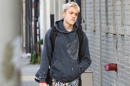 Папарацци запечатлели 17-летнего наследника артистов в по пути на тренировку по тайскому боксу. Он предстал перед камерой в черном худи с декором в виде боксерских перчаток и коротких шортах с разноцветным принтом.