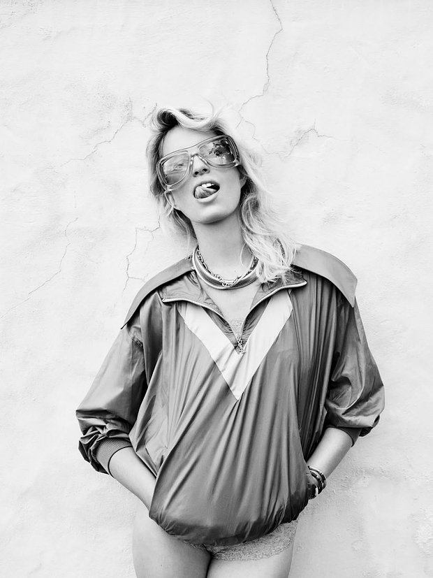 42-летняя манекенщица предстала перед камерой без штанов. Она позировала в открытых туфлях на шпильках, кружевных трусах и атласной кофте, оформленной молнией. При этом ее образ дополняли солнцезащитные очки, массивное ожерелье и цепь.
