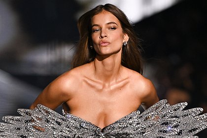 Кроме того, манекенщица надела черные сапоги на каблуках и белую меховую шубу. Образ завершила массивная сумка.