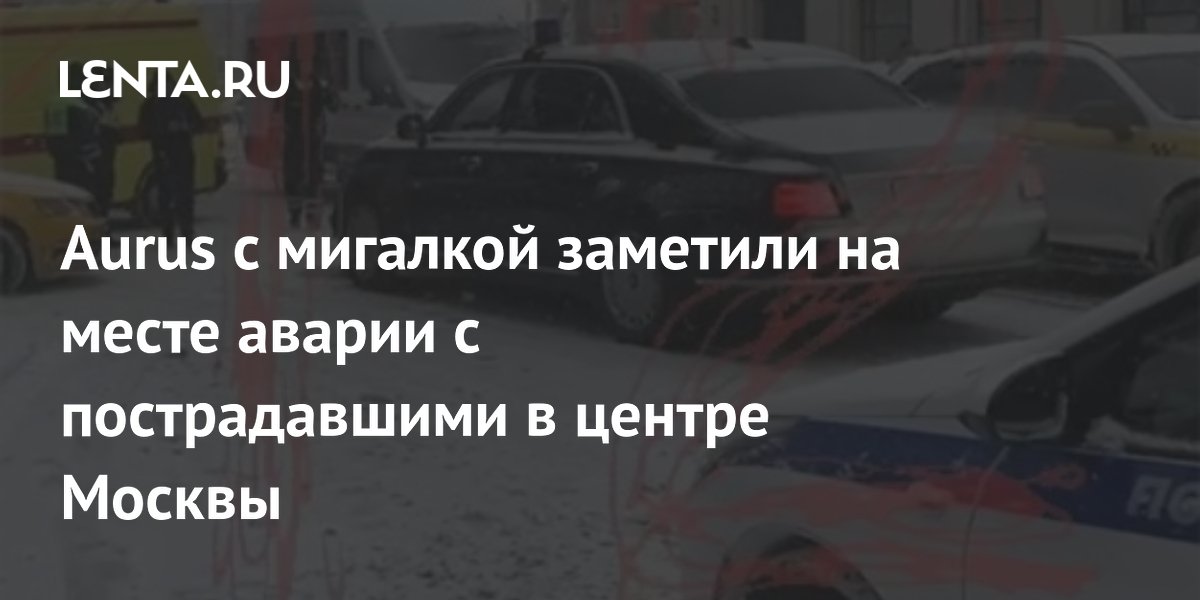 На кадрах видно такси и Аurus с мигалкой, на переднем бампере которого заметны повреждения. Также запечатлены машины экстренных служб.
