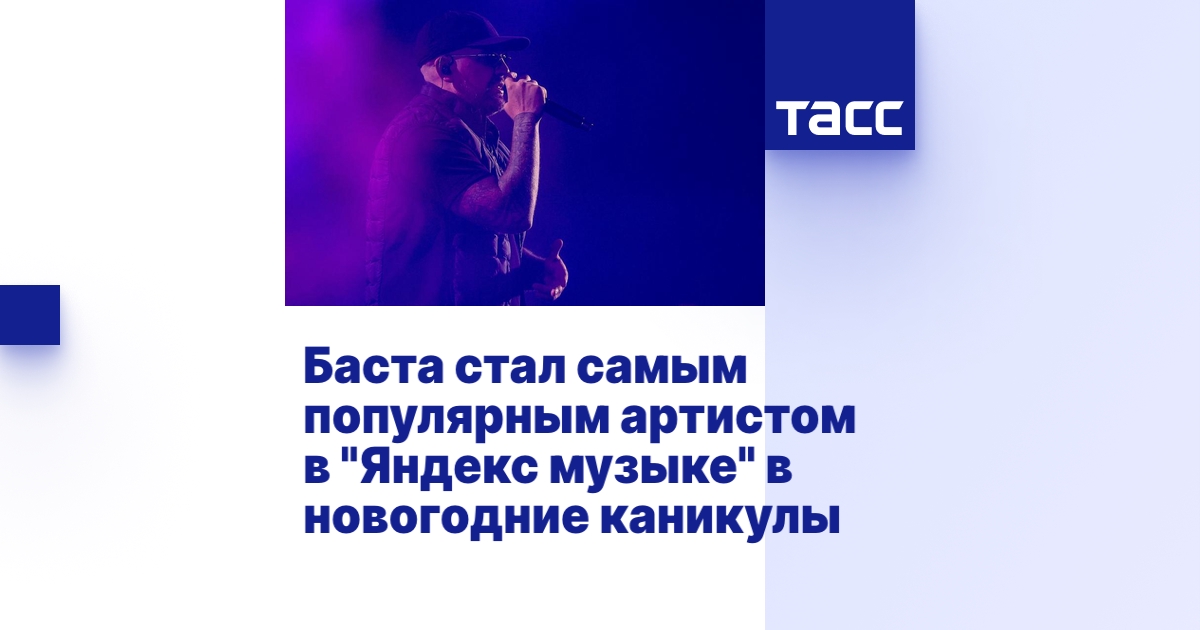 МОСКВА, 16 января. /ТАСС/. Российский певец Баста стал самым популярным артистом среди пользователей "Яндекс музыки" в период новогодних каникул с 31 декабря по 11 января. Аналитику для ТАСС предоставил сервис "Яндекс плюс".