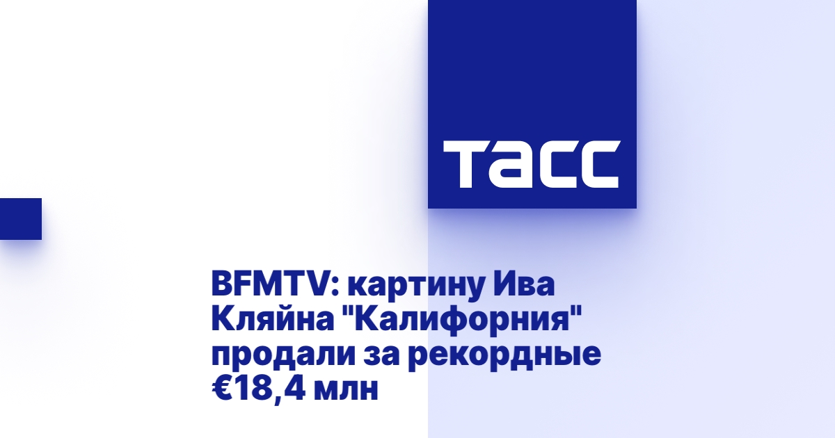 ПАРИЖ, 24 октября. /ТАСС/. Монохромная картина французского художника Ива Кляйна была продана на аукционе Christie's за рекордные €18,4 млн. Об этом сообщил телеканал .