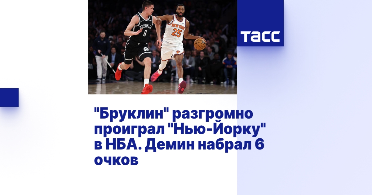 Российский защитник "Бруклина" Егор Демин набрал 6 очков. Также на счету россиянина 1 подбор и 3 передачи. Игрок провел на площадке 20 минут 52 секунды.