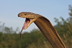 Яд вызывает паралич дыхательной мускулатуры и остановку дыхания. Через 15 минут после укуса наступает смерть. В природе королевские кобры питаются преимущественно змеями других видов.