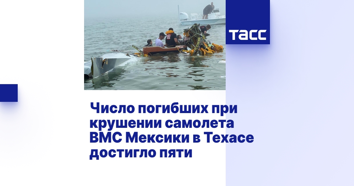 МЕХИКО, 23 декабря. /ТАСС/. Число погибших в результате инцидента с самолетом Военно-морских сил Мексики, произошедшего в районе города Галвестон в штате Техас во время выполнения гуманитарной миссии, выросло до пяти. Об этом сообщило Министерство военно-морских сил Мексики.