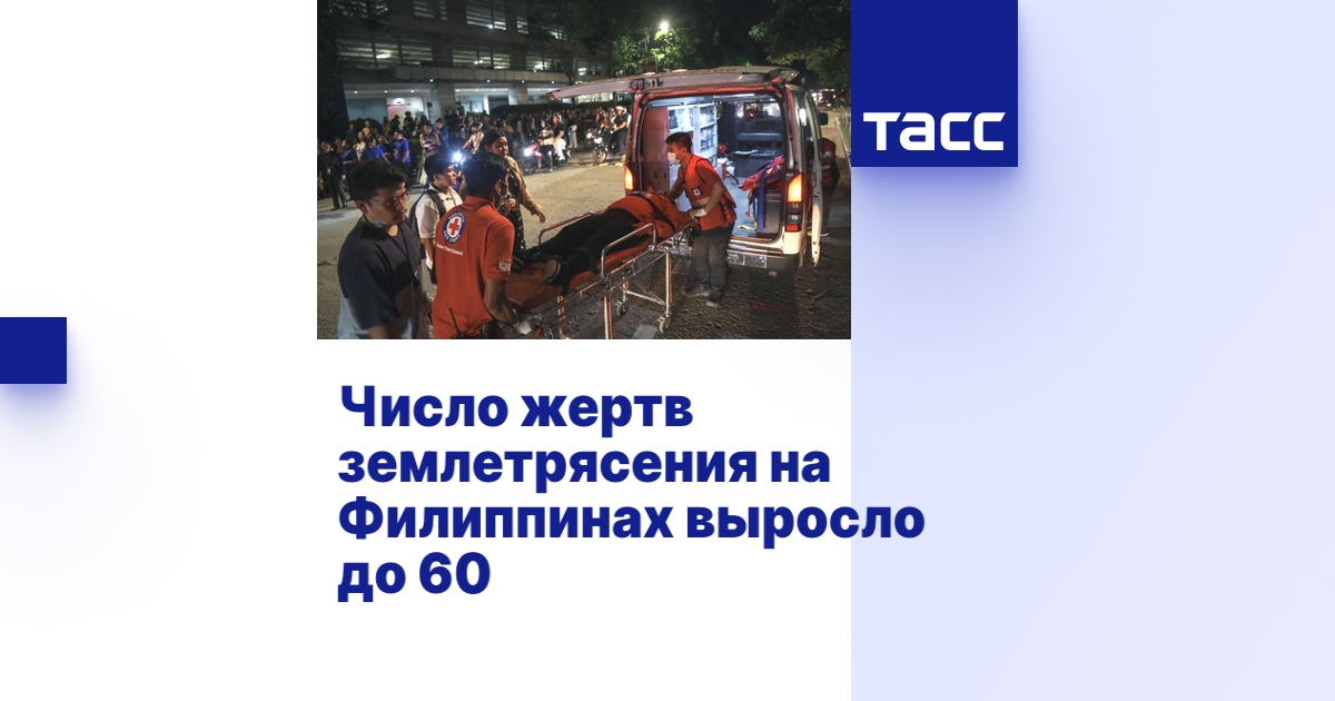 БАНГКОК, 1 октября. /ТАСС/. Число погибших в результате землетрясения на Филиппинах возросло до 60 человек. Об этом сообщил телеканал со ссылкой на управление гражданской обороны республики.