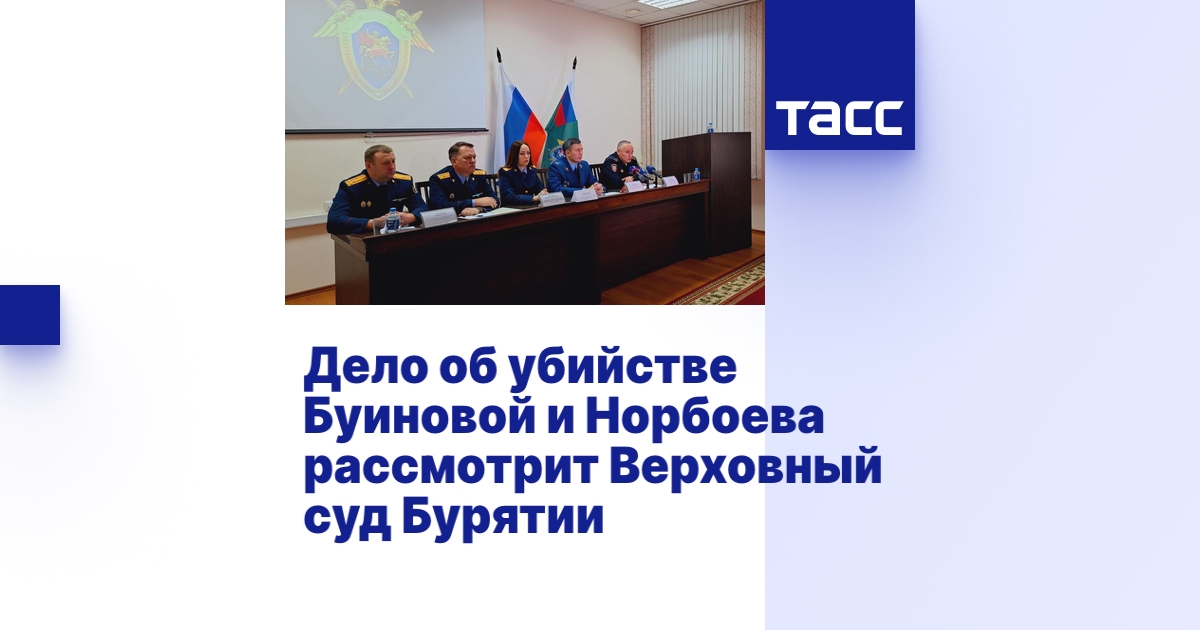 УЛАН-УДЭ, 5 ноября. /ТАСС/. Уголовное дело об убийстве Сэсэг Буиновой и Станислава Норбоева, а также еще одного жителя Бурятии, ставшего свидетелем преступления, будет рассматривать Верховный суд республики, дело планируется направить в высший орган судебной власти региона. Об этом сообщил журналистам исполняющий обязанности начальника управления по надзору за уголовно-процессуальной и оперативно-разыскной деятельностью прокуратуры Бурятии Максим Дашижапов.