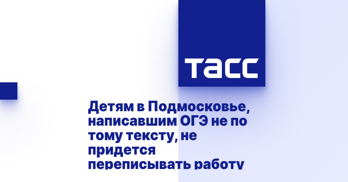 "По ситуации с использованием неверного аудиофайла с изложением на ОГЭ по русскому языку в Дубне и Чехове: принято решение, что работа будет перепроверена по тексту, который прозвучал, в рамках процедуры апелляции в пользу ребенка. Детям переписывать работу не придется", - сказал собеседник агентства.