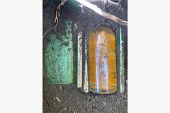 «Нашел стеклянную бутылку без видимых маркировок, упакованную со всех сторон в зеленую плитку. Есть ли у кого-нибудь идеи, что это может быть и почему ее закопали таким образом?» — написал он, прикрепив изображения стеклянной тары с желтым содержимым внутри.