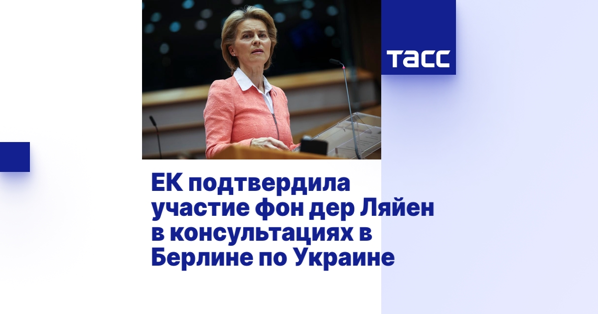 БРЮССЕЛЬ, 15 декабря. /ТАСС/. Еврокомиссия подтвердила участие главы Еврокомиссии Урсулы фон дер Ляйен в консультациях западных стран по Украине в Берлине. Об этом заявил представитель Еврокомиссии Олоф Джилл на брифинге в Брюсселе.