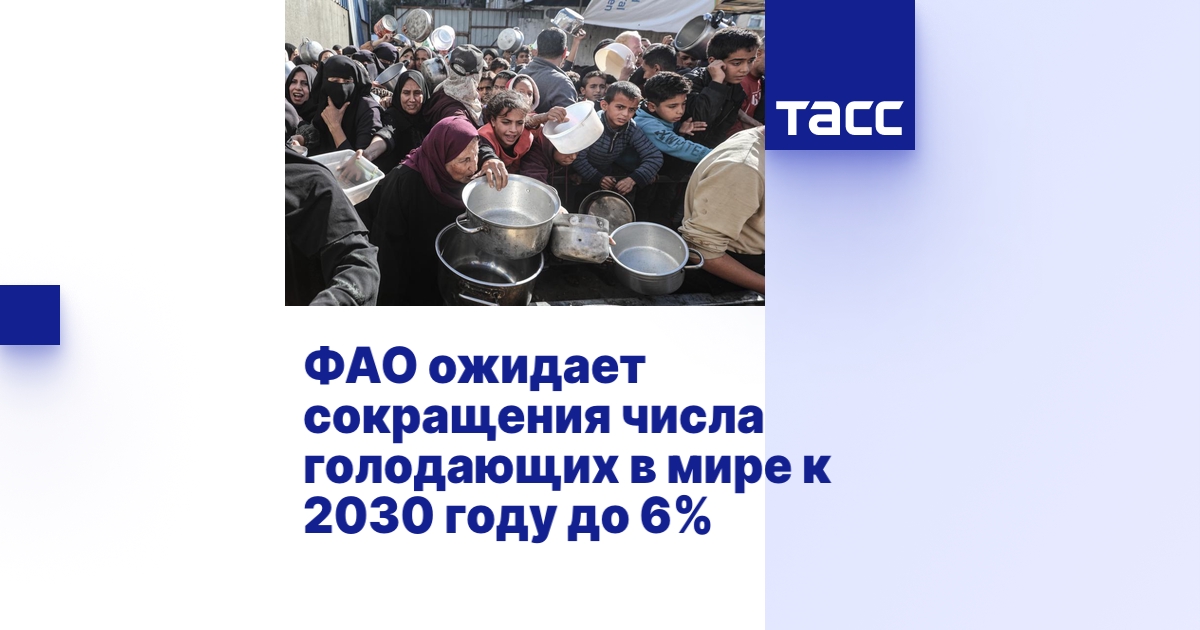 "После ковидного кризиса мы наблюдаем снижение уровня голода в мире. На данный момент, по последней информации в рамках нашего флагманского доклада "Положение дел в области продовольственной безопасности и питания в мире", доля голодающих сейчас примерно 8% это 673 млн человек. Но темпы снижения голода явно недостаточные. К 2030 году мы точно не достигнем устойчивого нуля, как это было запланировано Повесткой устойчивого развития