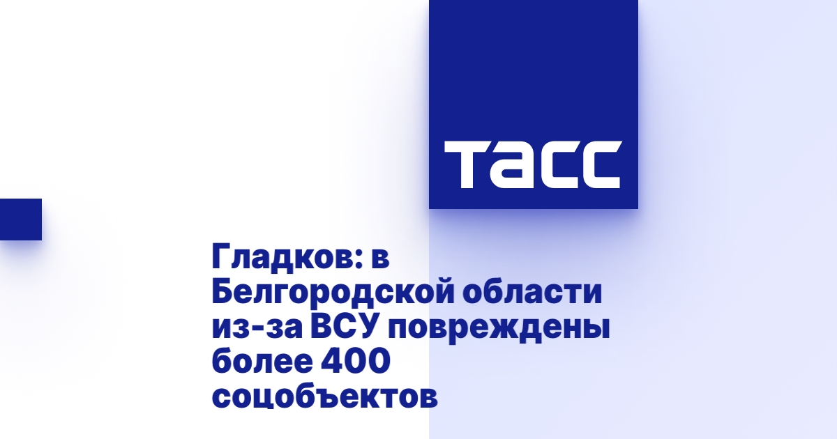 МОСКВА, 11 июля. /ТАСС/. Более 400 объектов социальной инфраструктуры повреждены в Белгородской области в результате атак Вооруженных сил Украины (ВСУ). Об этом в интервью ТАСС сообщил губернатор Вячеслав Гладков.