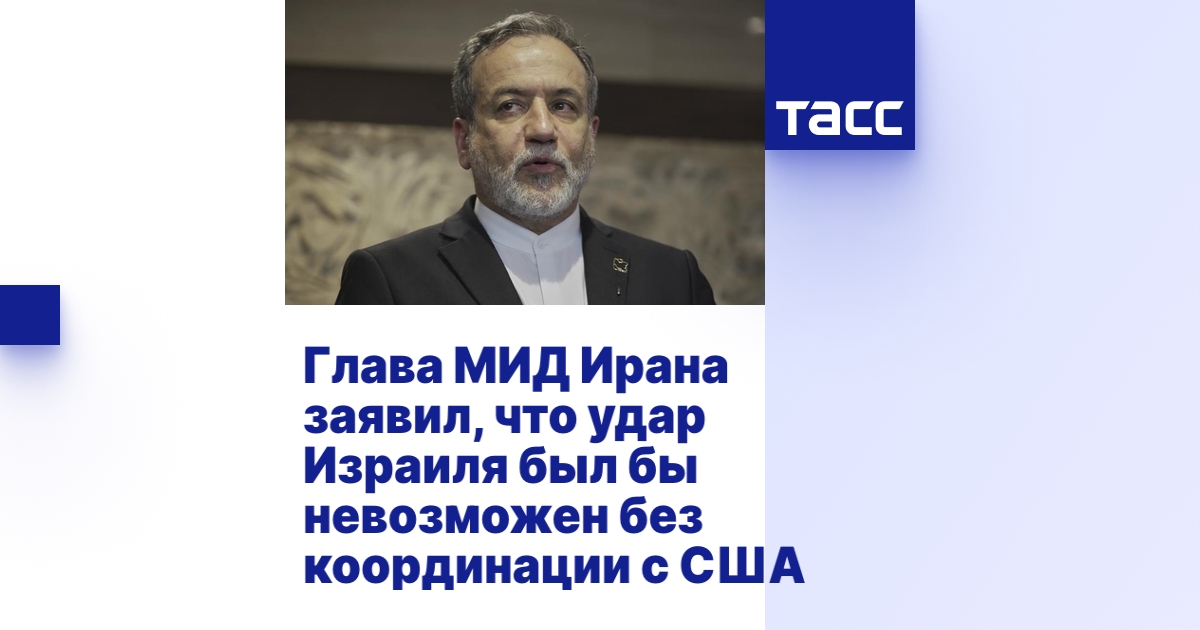 ДУБАЙ, 13 июня. /ТАСС/. Израиль не смог бы осуществить удар по Ирану без разрешения США и координации с Вашингтоном, заявил министр иностранных дел исламской республики Аббас Арагчи.