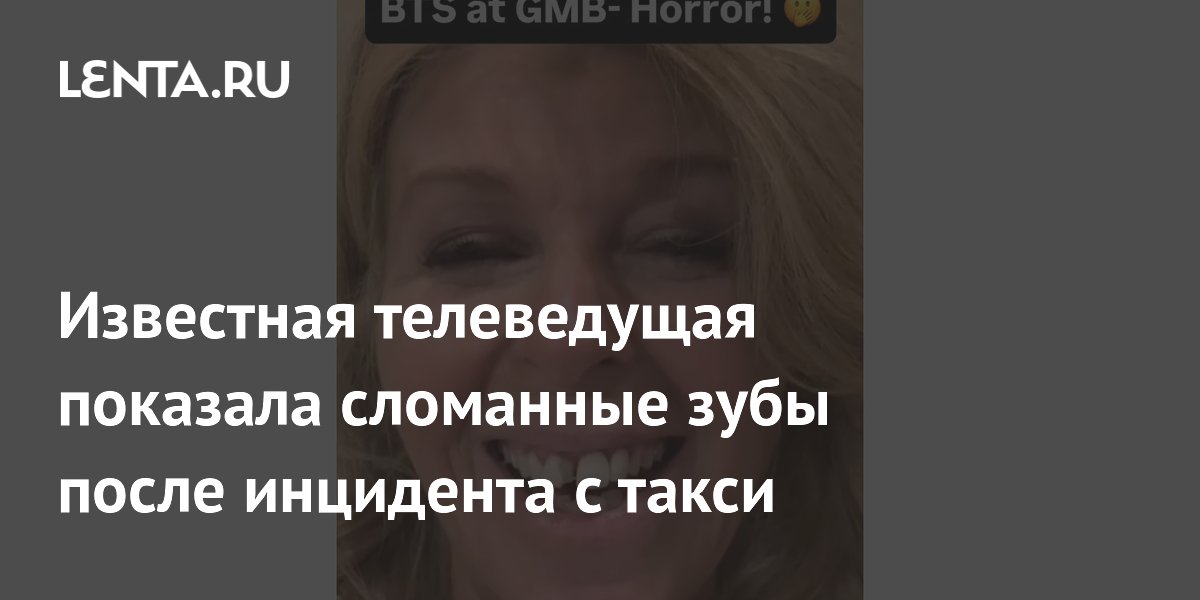 Известная британская телеведущая и журналистка Кейт Гаррауэй рассказала, что повредила зубы в результате инцидента с такси. В своем Instagram-аккаунте (соцсеть запрещена в России; принадлежит компании Meta, которая признана экстремистской и запрещена в ) она опубликовала видео со сломанными коронками.