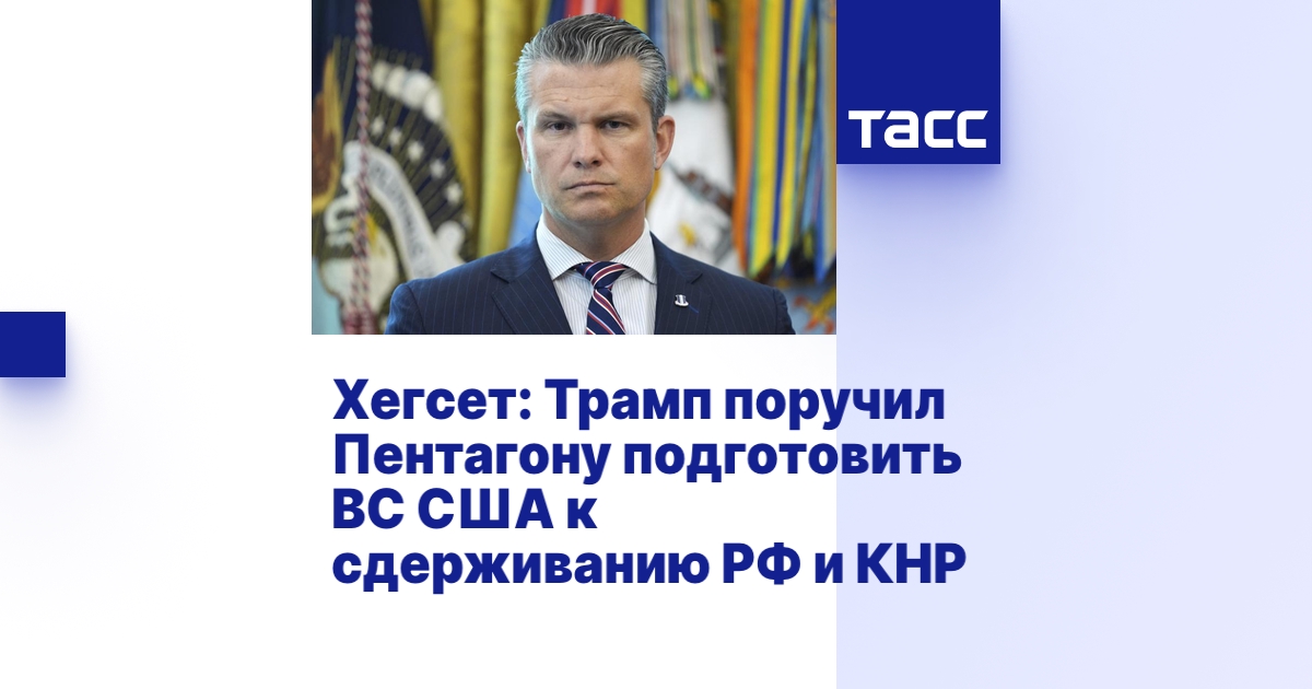 НЬЮ-ЙОРК, 3 сентября. /ТАСС/. Глава Белого дома Дональд Трамп поручил Пентагону подготовиться к сдерживанию сблизившихся РФ и КНР. Об этом заявил в интервью телеканалу Fox News глава американского оборонного ведомства Пит Хегсет.