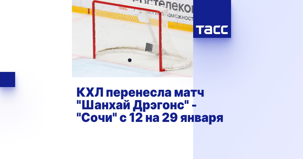 МОСКВА, 11 января. /ТАСС/. Матч регулярного чемпионата Фонбет - Континентальной хоккейной лиги (КХЛ) между китайским клубом "Шанхай Дрэгонс" и "Сочи" перенесли с 12 на 29 января. Об этом сообщает пресс-служба лиги.
