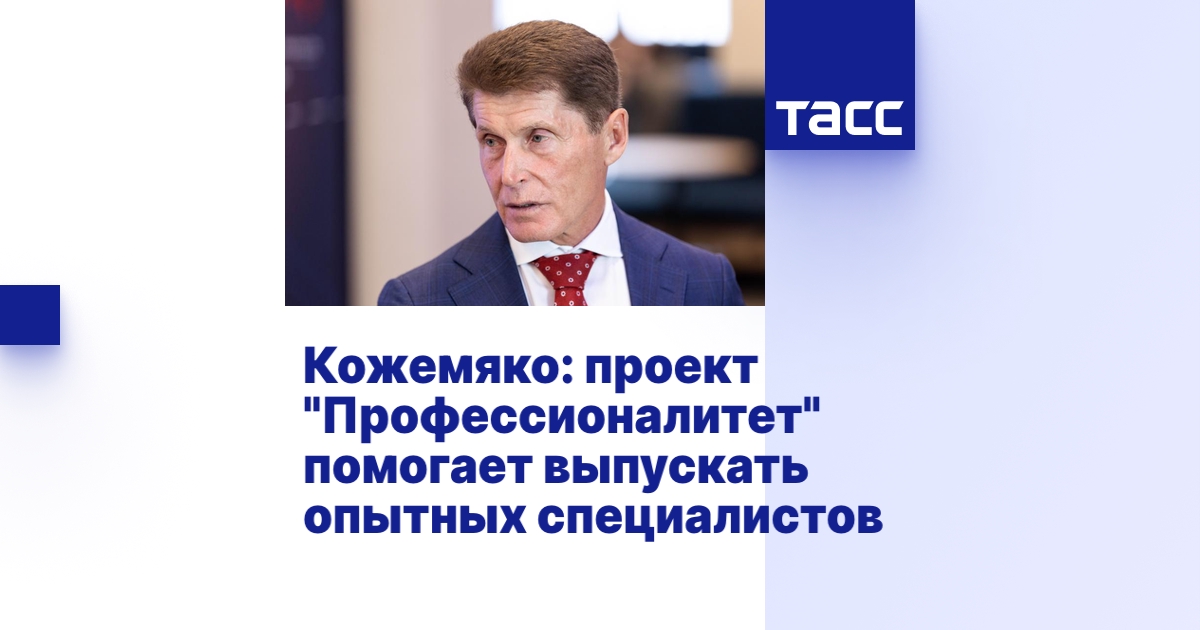 ВЛАДИВОСТОК, 7 сентября. /ТАСС/. Федеральный проект "Профессионалитет" в средних профессиональных учреждениях помогает выпускать не теоретиков, а опытных специалистов. Об этом в интервью проекту "НЬЮМ ТАСС" на полях ВЭФ сказал губернатор Приморского края Олег Кожемяко.