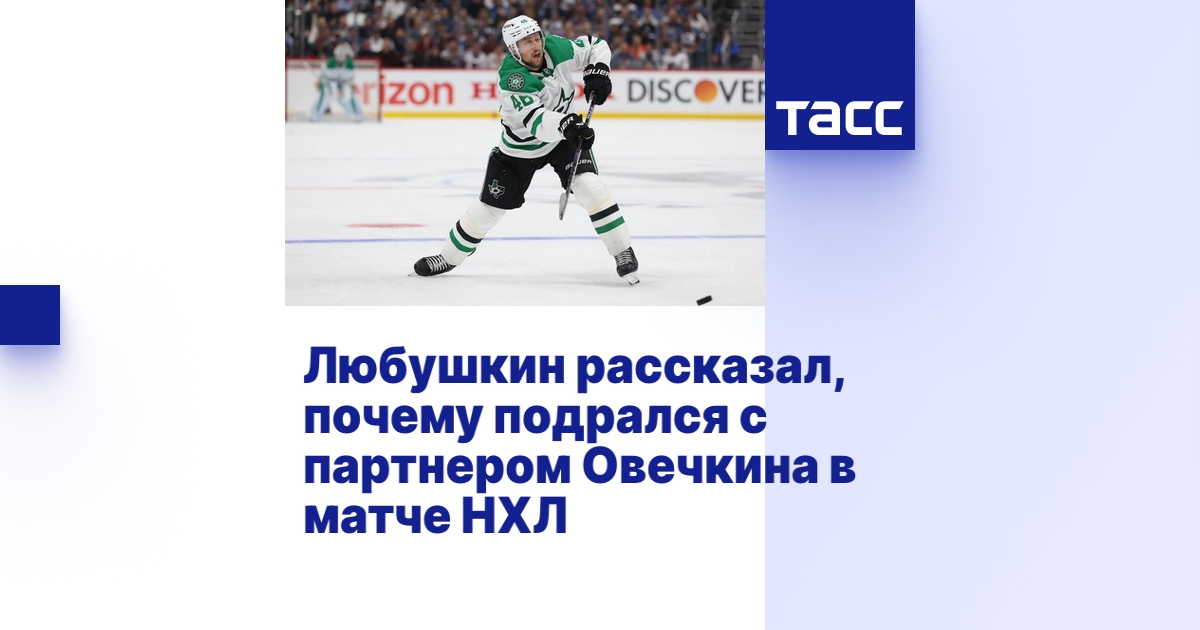 МОСКВА, 10 января. /Корр. ТАСС Рустам Шарафутдинов/. Защитник "Далласа" Илья Любушкин подрался в недавнем матче регулярного чемпионата Национальной хоккейной лиги с форвардом "Вашингтона" Брендоном Дюхеймом, так как тот неправильно повел в себя в ряде предыдущих ситуаций. Об этом Любушкин рассказал ТАСС.