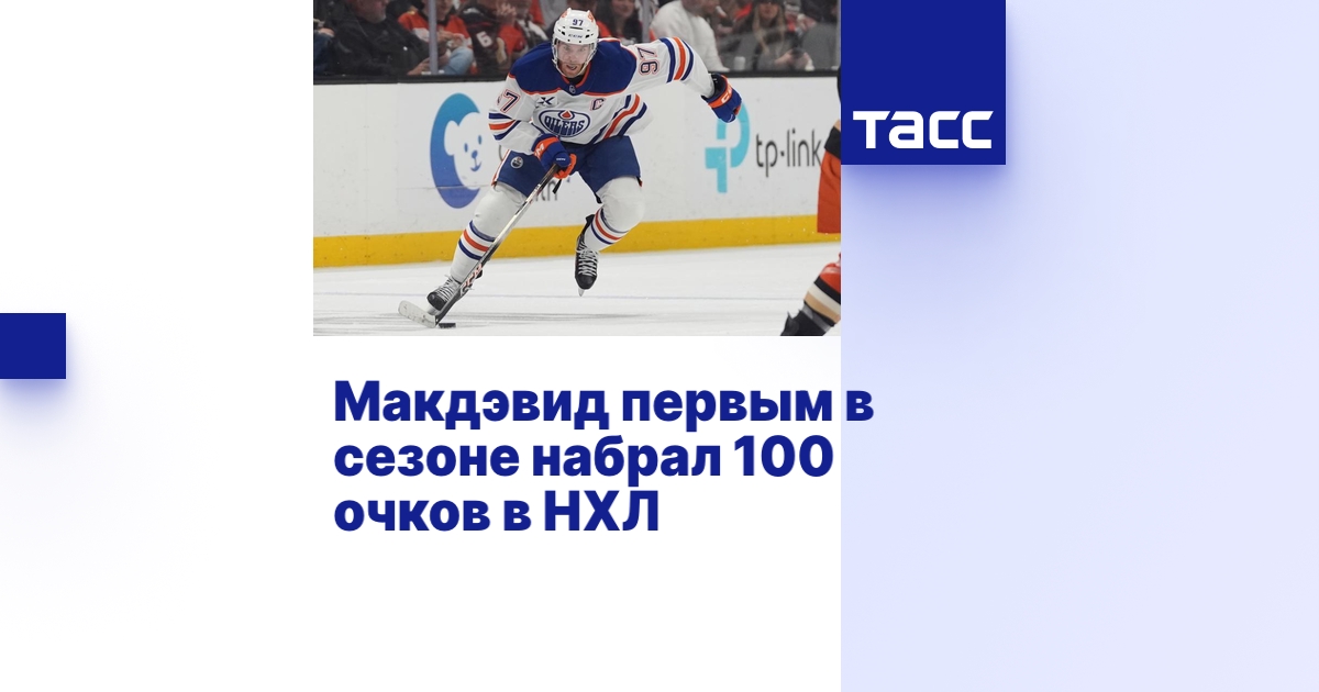 ВАШИНГТОН, 27 февраля. /ТАСС/. Канадский нападающий "Эдмонтона" Коннор Макдэвид стал первым игроком в текущем сезоне Национальной хоккейной лиги, который достиг отметки в 100 очков.