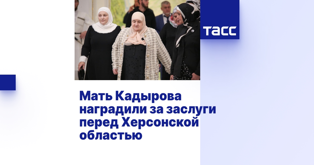 ГРОЗНЫЙ, 5 августа. /ТАСС/. Губернатор Херсонской области Владимир Сальдо наградил мать главы Чечни, президента регионального общественного фонда имени Ахмат-Хаджи Кадырова Аймани Кадырову знаком ордена "За заслуги перед Херсонской областью" I степени. Награду ей передал председатель правительства региона Магомед Даудов.