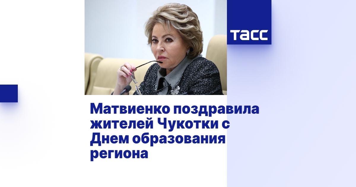 МОСКВА, 10 декабря. /ТАСС/. Председатель Совета Федерации Валентина Матвиенко поздравила руководство и жителей Чукотского автономного округа с 95-летием со дня образования региона, отметив, что субъект обладает мощным производственным потенциалом, развивается стабильно и динамично.