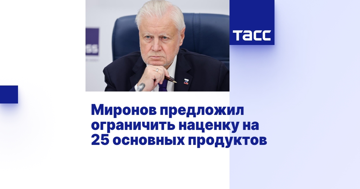 "У нас есть идея о перечне из примерно 25 продуктов, который утверждается правительством. Установить правило, что наценка на них в любой торговой точке - хоть мегамаркет, хоть маленький поселковый магазинчик - не должна быть более 15% от цены оптовой закупки", - сказал Миронов ТАСС, отвечая на вопрос о планах и приоритетах фракции на осеннюю сессию.