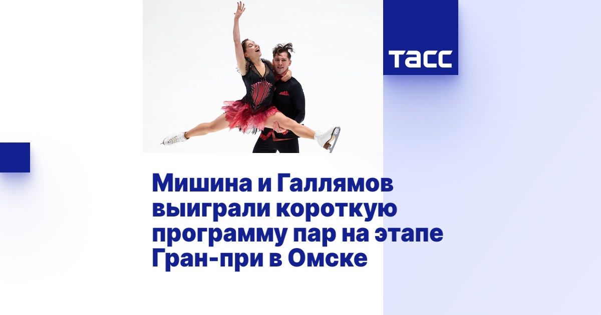 ОМСК, 22 ноября. /ТАСС/. Анастасия Мишина и Александр Галлямов заняли первое место в короткой программе на пятом этапе серии Гран-при России по фигурному катанию в соревнованиях спортивных пар. Турнир проходит в Омске.