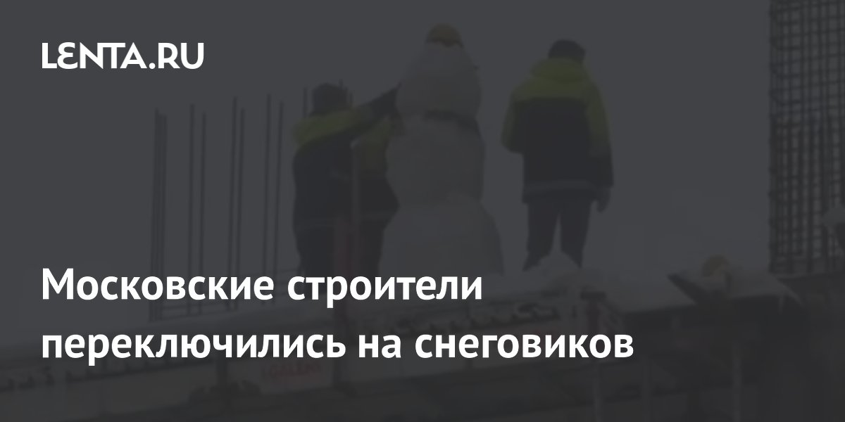 На кадрах видно, как четверо строителей заканчивают лепить снеговика на одной из незавершенных построек. Снежная фигура состоит из трех ярусов, а украшением верхней части служит желтая строительная каска.