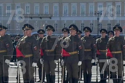 На Дворцовой площади провели репетицию парада Победы. Ее запечатлели на видео, запись публикует .