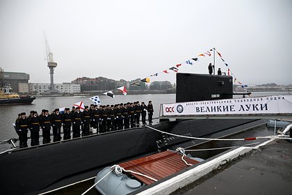 Церемония подъема Военно-морского флага России на дизель-электрической подводной лодке «Великие Луки» проекта 677М «Лада» состоялась на в . Об этом сообщает .