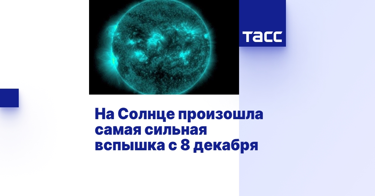 МОСКВА, 27 декабря. /ТАСС/. Самая сильная с 8 декабря вспышка произошла на Солнце. Об этом сообщается в лаборатории солнечной астрономии Института космических исследований Российской академии наук.