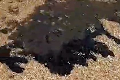 По словам специалистов, химические вещества проникли не только в песок, но и лежат на дне моря. На опубликованных кадрах нефтепродукты выкинуло прямо на берег.