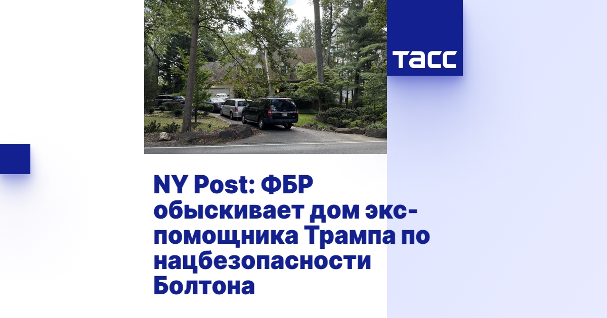 НЬЮ-ЙОРК, 22 августа. /ТАСС/. Агенты Федерального бюро расследований (ФБР) США проводят обыски в доме бывшего помощника президента США Дональда Трампа по нацбезопасности Джона Болтона в городе Бетесда в штате Мэриленд. Об этом неназванный представитель Белого дома сообщил газете (NY Post).