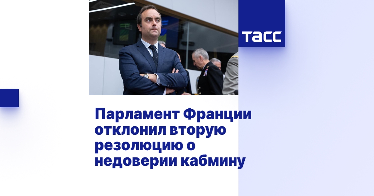 ПАРИЖ, 23 января. /ТАСС/. Национальное собрание (нижняя палата парламента) Франции отклонило вторую резолюцию о недоверии правительству Себастьена Лекорню. Об этом свидетельствуют итоги голосования.