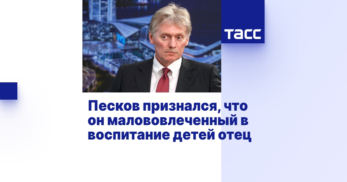 "Малововлеченный [в воспитание детей отец], - с улыбкой ответил Песков на вопрос журналиста ВГТРК Павла Зарубина о том, каким отцом он является. - Надо больше вовлекаться".
