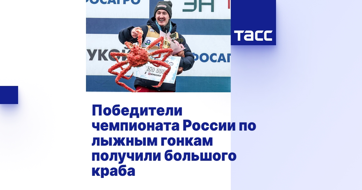 ЮЖНО-САХАЛИНСК, 26 февраля. /ТАСС/. Победителям чемпионата России по лыжным гонкам в качестве приза выдавали большого дальневосточного краба. Об этом сообщает корреспондент ТАСС с места событий.