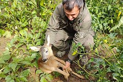 Госинспекторы оперативно прибыли и увидели напуганного и обессиленного косуленка. Специалисты отметили, что травм у животного не было. Для безопасной транспортировки его копытца обмотали тканью, уложили его в брезент и вывезли в лес. Как только косуленок оказался в привычной среде, он быстро встал на ноги и скрылся среди деревьев. Вся операция заняла около двух часов.