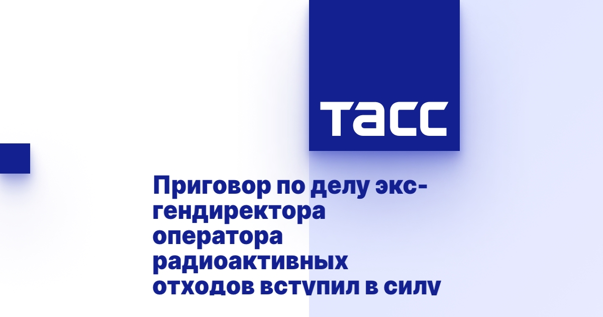 "Вступило в законную силу решение Хамовнического районного суда Москвы о признании виновным бывшего генерального директора ФГУП "Национальный оператор по обращению с радиоактивными отходами" госкорпорации "Росатом". Судом он признан виновным по ч. 6 ст. 290, ч