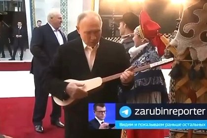 Президент России сыграл на традиционном киргизском инструменте, комузе. Видео публикует журналист ВГТРК в -канале.