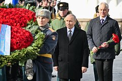 Президент России возложил цветы к Могиле Неизвестного Солдата у Кремлевской стены в Александровском саду. Об этом рассказал корреспондент .