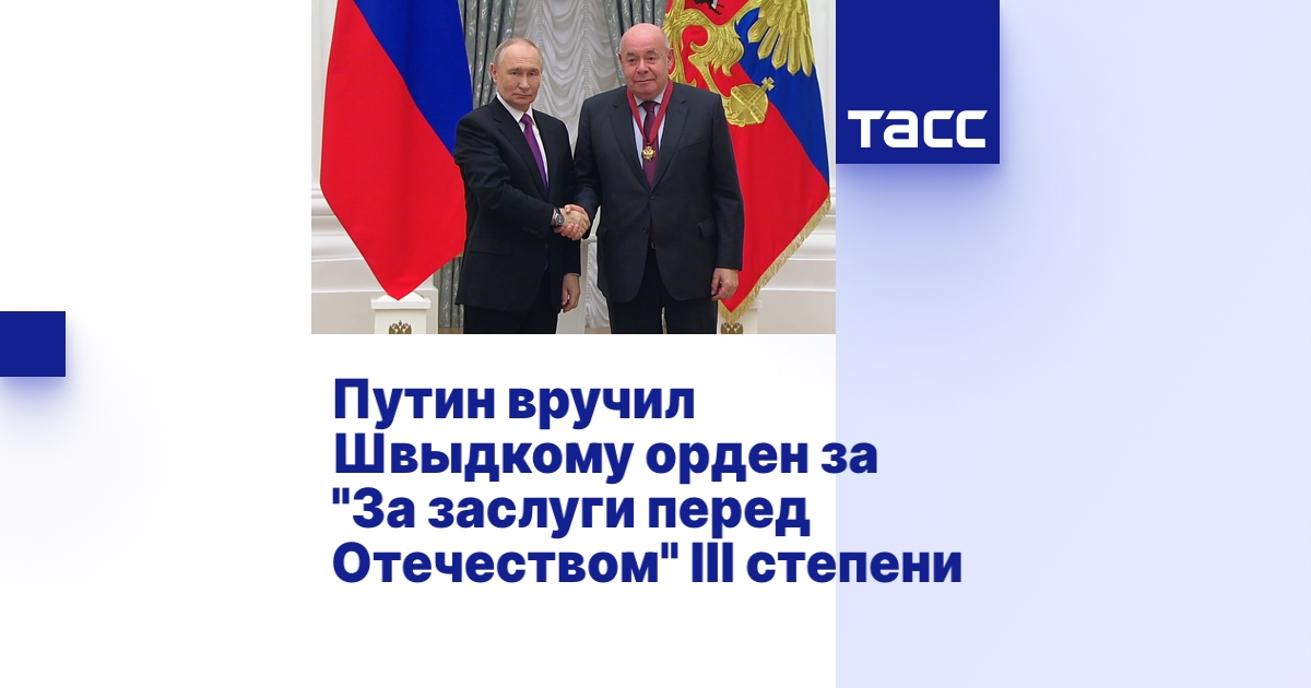 МОСКВА, 4 ноября. /ТАСС/. Президент России Владимир Путин наградил орденом "За заслуги перед Отечеством" III степени своего специального представителя по международному культурному сотрудничеству Михаила Швыдкого. Церемония вручения наград проходит в Кремле в День народного единства.
