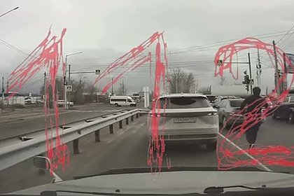 На кадрах видно, как машины стоят на светофоне. В это время к ним приближается автомобиль, из которого выбегает несколько человек. Они окружают чужую машину и разбивают передние стекла. Тогда уже из этого авто выбегают другие люди — они нападают на оппонентов, а один из них даже стреляет в них.