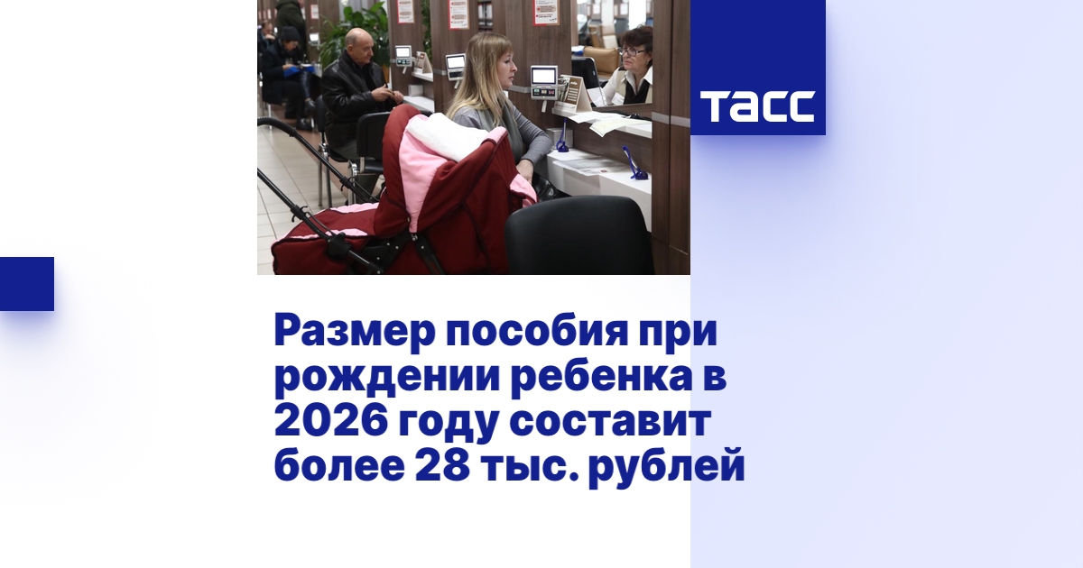 МОСКВА, 20 декабря. /ТАСС/. С февраля 2026 года единовременное пособие при рождении ребенка составит 28 773 рубля. Об этом свидетельствует закон о бюджете Социального фонда России на 2026-2028 годы.