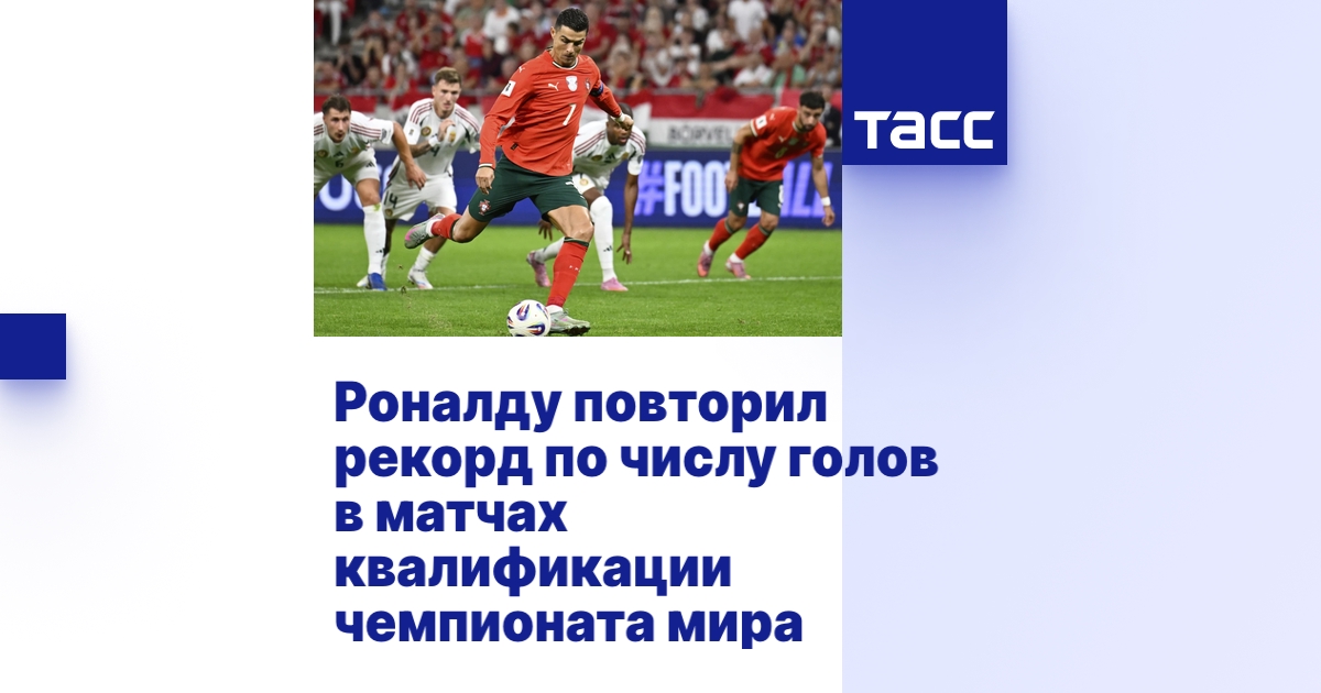 БУДАПЕШТ, 9 сентября. /ТАСС/. Нападающий сборной Португалии по футболу Криштиану Роналду повторил рекорд по количеству забитых мячей в матчах квалификации чемпионата мира.