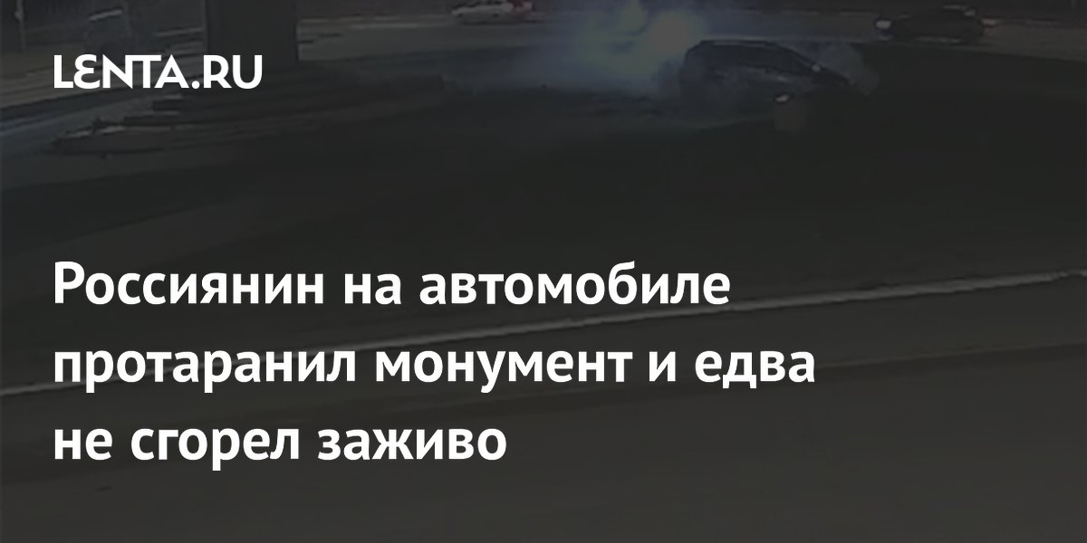 В мужчина на автомобиле протаранил монумент в центре перекрестка и едва не сгорел заживо. Происшествие с россиянином попало на видео, ролик опубликовал -канал «112».
