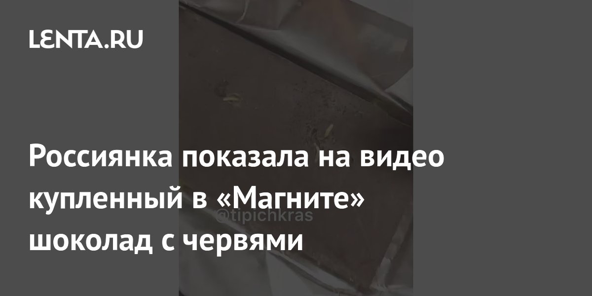 На кадрах россиянка показывает две плитки шоколада одного из брендов — по обеим ползают черви белого цвета. Автор видео показывает срок годности одной из плиток — согласно ему, продукт годен к употреблению до 2027 года.