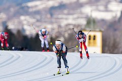 Российская лыжница Дарья Непряева перепутала лыжи в масс-старте. Трансляция соревнований ведется на .