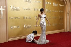 Американская певица и актриса Тейяна Тейлор, которую мужской журнал Maxim признал самой сексуальной женщиной в мире, в откровенном наряде посетила премию SAG Awards. Снимки с мероприятия публикует .