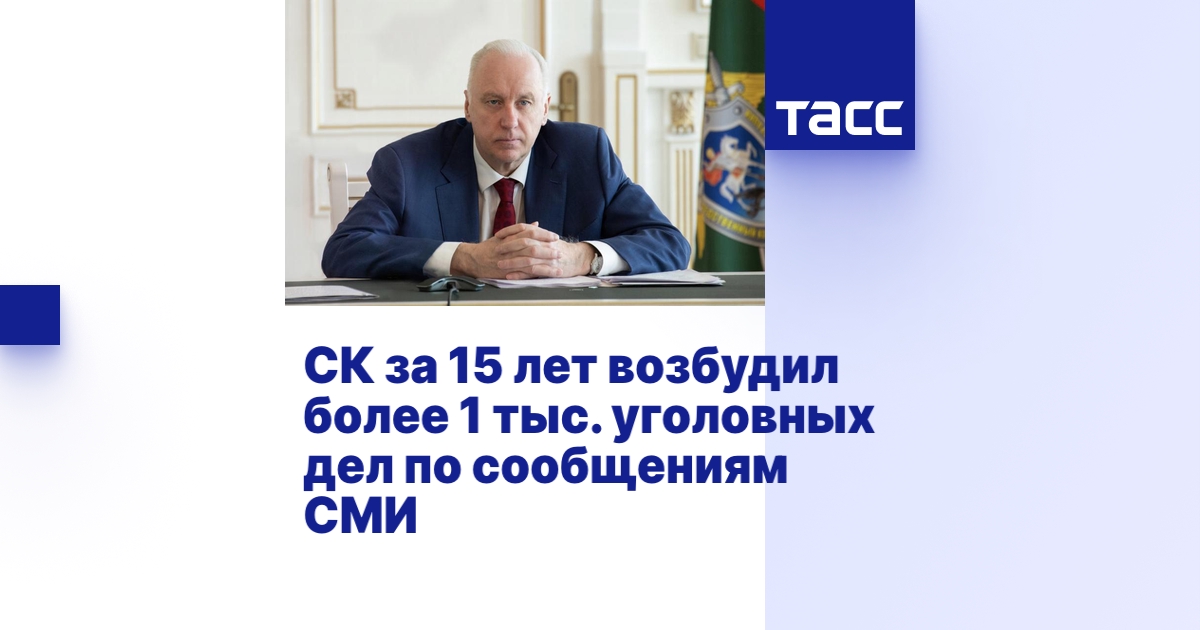 МОСКВА, 14 января. /ТАСС/. Следственный комитет России с 2011 года возбудил более 1 тыс. уголовных дел по сообщениям СМИ. Об этом сообщил глава ведомства Александр Бастрыкин в интервью ТАСС в преддверии 15-летия со дня образования СК.