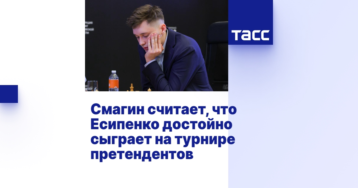 МОСКВА, 10 января. /ТАСС/. Российский шахматист Андрей Есипенко сможет достойно выступить на турнире претендентов. Такое мнение ТАСС высказал вице-президент Федерации шахмат России Сергей Смагин.